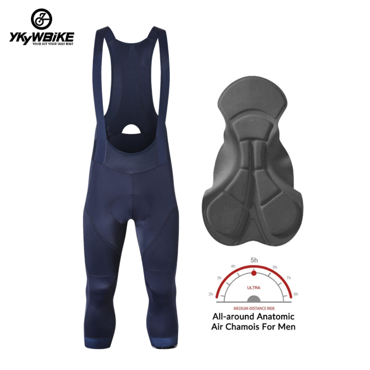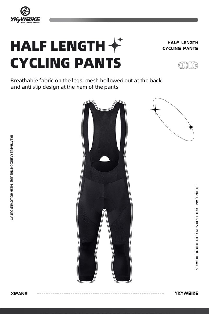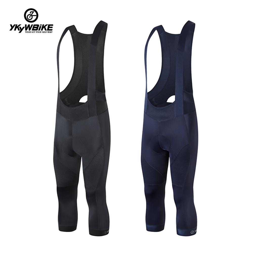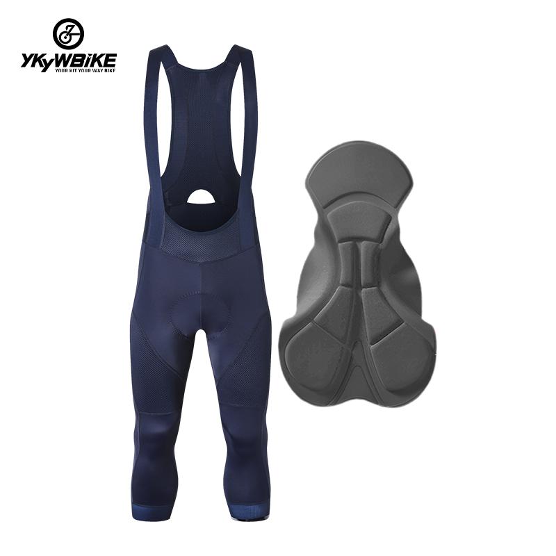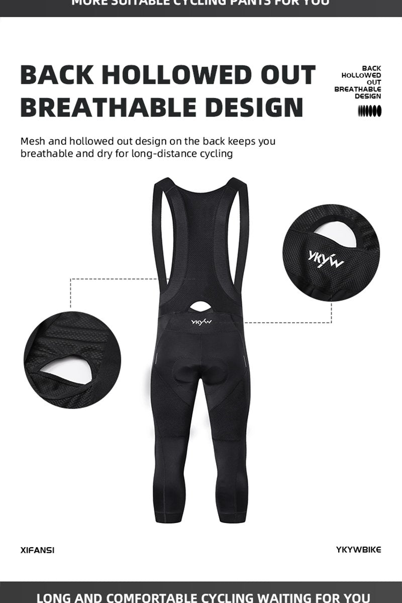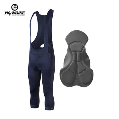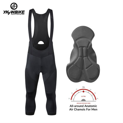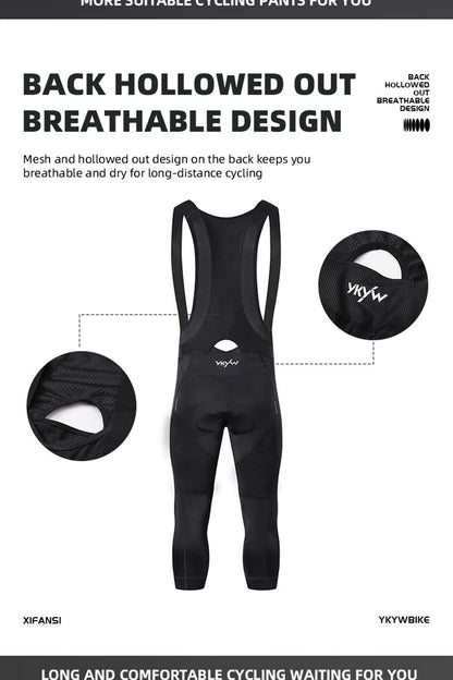 YKYW Men's Pro Tight Cycling Bib 3/4 Pants 5H Ride Back Hollow Design Breathable Legs With Silicone Non-slip Darkblue