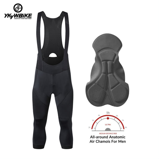 YKYW Men's Pro Tight Cycling Bib 3/4 Pants 5H Ride Back Hollow Design Breathable Legs With Silicone Non-slip Black
