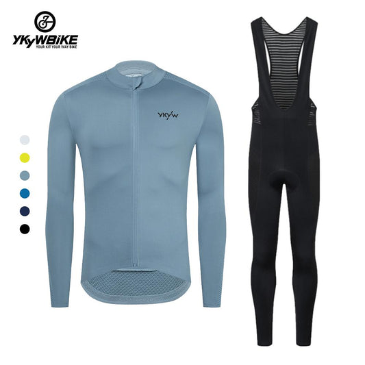 YKYW Men’s Cycling Jersey Set 15-25℃ YKK Zipper 3+1 Pocket Long Sleeves Cycling Jersey and 5H Ride Spring Autumn Breathable Pro Tight Cycling Bib Long Pants