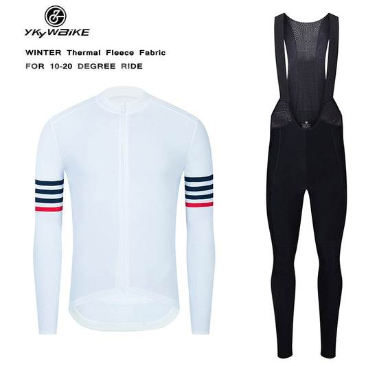 YKYW Men’s Cycling Jersey SetWinter 5-15℃ Thermal Fleece Long Sleeves Cycling Jersey and 5H Pro Tight Cycling Bib Long Pants with Step on Foot Design